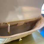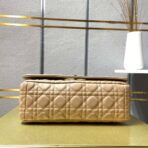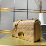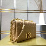 The new Dior Caro handbag is decorated with Cannage pattern stitching on gray calfskin. showing a unique stitch texture. The flap of this soft bag is equipped with a retro gold-toned metal rotating “CD” lock. The design is inspired by the unique closure of the Christian Dior perfume bottle. The detachable iconic “CD” link shoulder strap can be replaced with a wide embroidered shoulder strap. allowing you to create an elegant and fashionable look regardless of occasion. morning or evening.